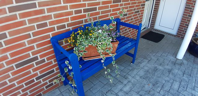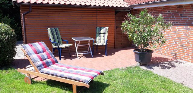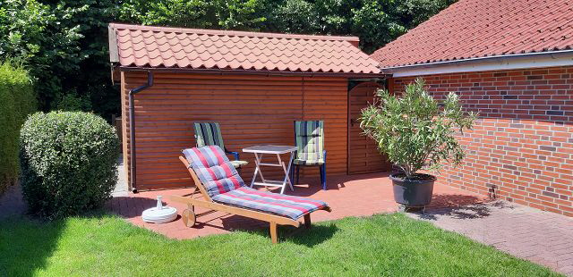 Die Terrasse mit Gartenmöbel, bequemen Auflagen und Grill laden zum Verweilen ein. Ihre Fahrräder werden sicher im abschließbaren Fahrradhaus neben den Parkplätzen verwahrt.